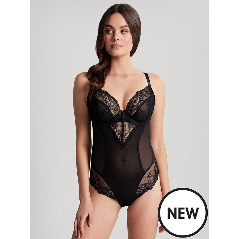 The gorgeous Ana Bodysuit will add a touch of glamour to your everyday lingerie collection. This flirty bodysuit offers support without compromising on a sexy style. The semi-sheer lace cups and leg openings seductively show a glimpse of skin through the feminine floral design. The non-padded cups create a comfortable fit and natural shape and the underwiring offers added support. A paneled midsection smooths the tummy and emphasizes your beautiful curves.
