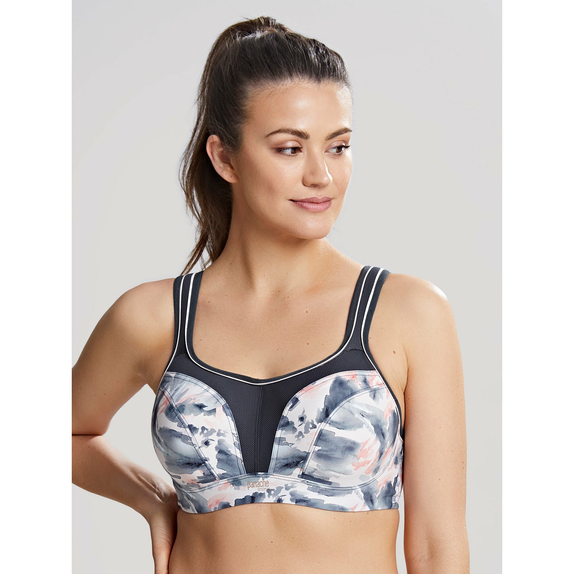 This underwired sports bra by Panache provides a super-smooth shape with flat seams which looks great under any sportswear. The wide padded straps and silicone wrapped wires add an extra level of comfort as well as support. Reduces bounce by 80%. Complete with back j-hook fastener, offering a choice of straight straps or a racer back look.